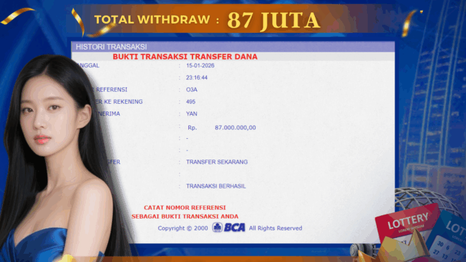 DEWATOGEL mengucapkan selamat kepada user id : IYA*** yang telah berhasil mendapatkan jackpot pada permainan TOGEL DI AMAZON LOTTO 5D. Kemenangan sebesar Rp 87.000.000,-. telah dibayarkan LUNAS oleh pihak dewatogel kepada pemilik user id setelah yang bersangkutan mengisi formulir withdraw. Proses pencairan dana berlangsung sangat cepat hanya dalam waktu 5-10 menit sudah berada dalam rekening pemilik user id. Bukti transfer yang dapat anda lihat adalah bukti SAH / VALID yang langsung di dapatkan melalui bukti transaksi dari Bank yang digunakan untuk pengiriman dana pada rekening pemilik user id. Terima kasih kami sampaikan kepada para pengguna setia DEWATOGEL yang telah menggunakan situs kami, sebagai Bandar Terpercaya yang pastinya membayar semua kemenangan member hingga lunas. Apakah DEWATOGEL PENIPU ? Reputasi “DEWATOGEL TERPERCAYA” sudah sangat melekat. puluhan hingga ratusan ribu pengguna setia DEWATOGEL tetap menggunakan situs terbesar dan terbaik di Indonesia ini. Hapus rasa was-was dan khawatir anda, kemenangan anda berapapun PASTI dibayarkan hingga lunas.