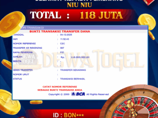 DEWATOGEL JACKPOT LIVE CASINO DI NIU NIU Rp 118.000.000,- LUNAS MEMBER DEWATOGEL MENERIMA PELUNASAN KEMENANGAN DEWATOGEL JACKPOT LIVE CASINO DI NIU NIU Rp 118.000.000,- LUNAS […]