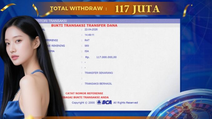 DEWATOGEL mengucapkan selamat kepada user id : NER*** yang telah berhasil mendapatkan jackpot pada permainan LIVE CASINO DI 24D SPIN. Kemenangan sebesar Rp 117.000.000,-. telah dibayarkan LUNAS oleh pihak dewatogel kepada pemilik user id setelah yang bersangkutan mengisi formulir withdraw. Proses pencairan dana berlangsung sangat cepat hanya dalam waktu 5-10 menit sudah berada dalam rekening pemilik user id. Bukti transfer yang dapat anda lihat adalah bukti SAH / VALID yang langsung di dapatkan melalui bukti transaksi dari Bank yang digunakan untuk pengiriman dana pada rekening pemilik user id. Terima kasih kami sampaikan kepada para pengguna setia DEWATOGEL yang telah menggunakan situs kami, sebagai Bandar Terpercaya yang pastinya membayar semua kemenangan member hingga lunas. Apakah DEWATOGEL PENIPU ? Reputasi “DEWATOGEL TERPERCAYA” sudah sangat melekat. puluhan hingga ratusan ribu pengguna setia DEWATOGEL tetap menggunakan situs terbesar dan terbaik di Indonesia ini. Hapus rasa was-was dan khawatir anda, kemenangan anda berapapun PASTI dibayarkan hingga lunas.