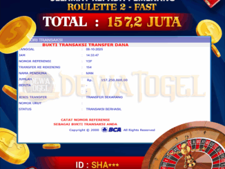 DEWATOGEL JACKPOT LIVE CASINO DI ROULETTE 2 – FAST Rp 157.250.000,- LUNAS